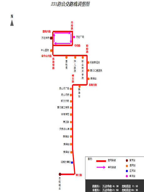 開往萬達(dá)廣場(chǎng)方向:7:10—7:45/17:20—18:00(經(jīng)停沿海辦事處時(shí)間預(yù)計(jì)7:13—7:48/17:23—18:03)。