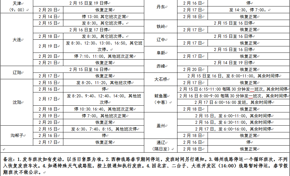 營口交通運(yùn)輸集團(tuán)汽車客運(yùn)站有限公司2018年春節(jié)假期班次安排表